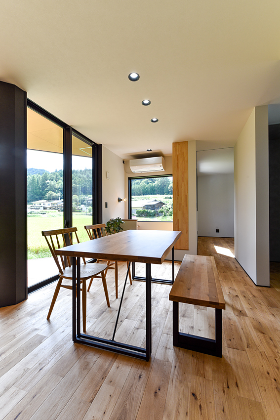 WORKS施工事例 「景色とアウトドアを楽しむ平屋の家」 CONCEPT 変形地を上手く利用して完成したのは、田園風景を望めるL字型の平屋の家。 趣味のアウトドアを楽しめるように、LDKをつなぐウッドデッキや土間収納を大きく確保しました。 広々としたLDKの一角には家族を感じつつ、自分だけの時間を過ごせるヌックスペースも。 開放的な景色を眺めながら、ハンモックに揺られるひと時。 ずっと家に居たくなるような、居心地の良いお家になりました。 WORKS一覧